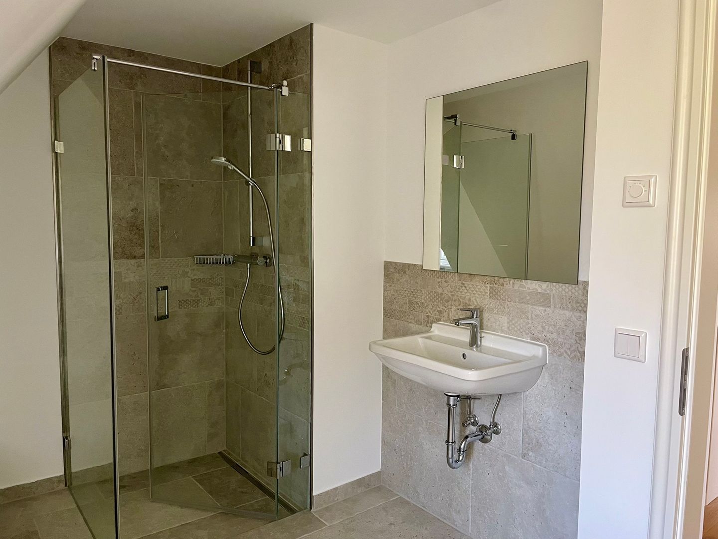 Im Obergeschoss sind die beiden Schlafzimmer - jeweils mit einem Doppelbett ausgestattet -, ein Vollbad mit Dusche und Badewanne sowie ein weiteres Duschbad gelegen.