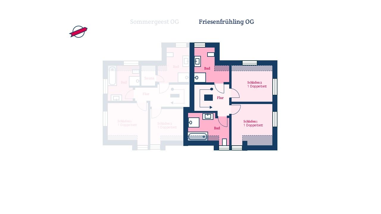 Die reetgedeckte Ferienhaushälfte Friesenfrühling verfügt über 2 Schlafzimmer, 2 Bäder und 1 Gäste-WC und bietet somit komfortabel Platz für bis zu 4 Personen zuzüglich einer Kleinkinderaufbettung.