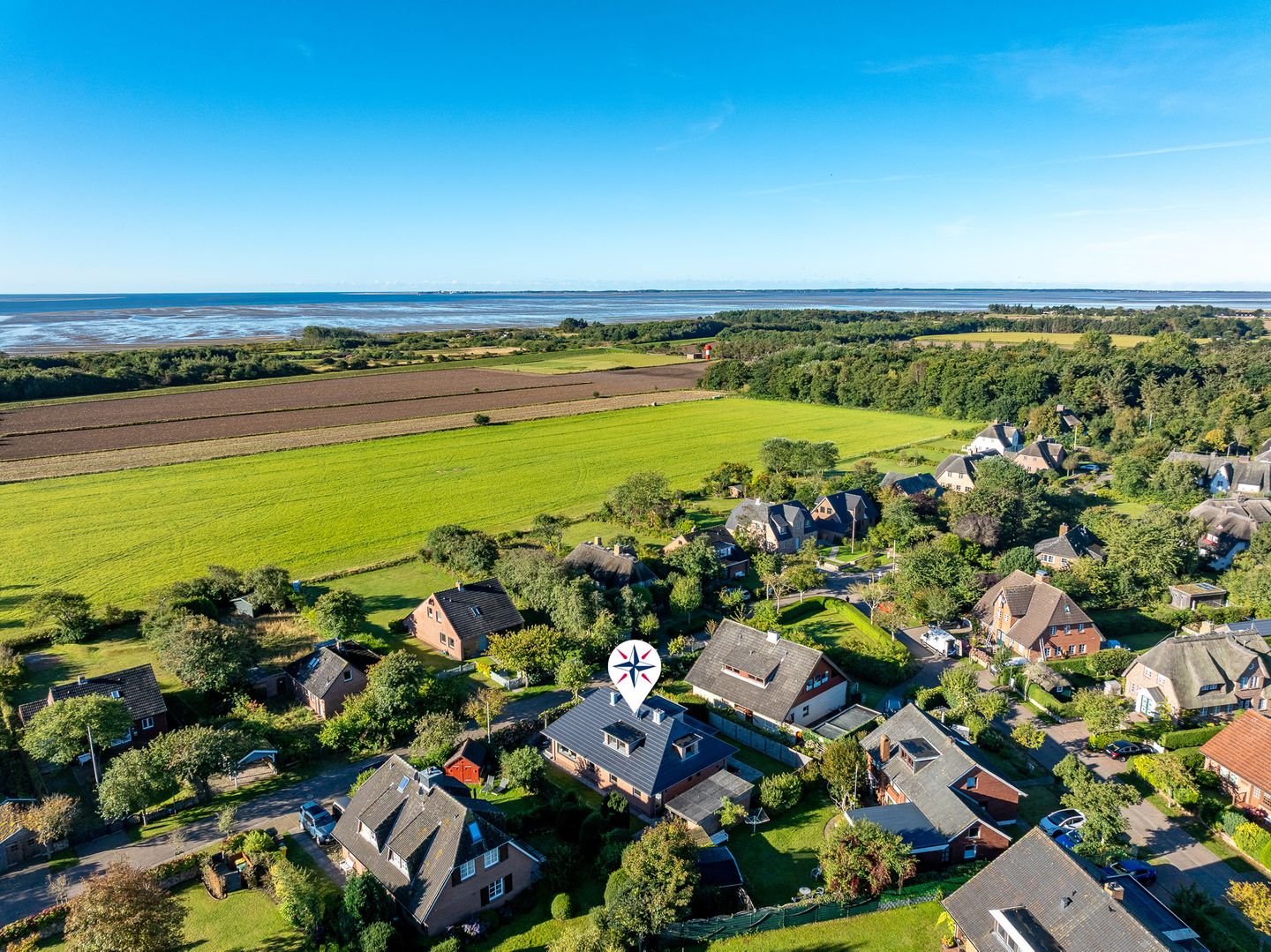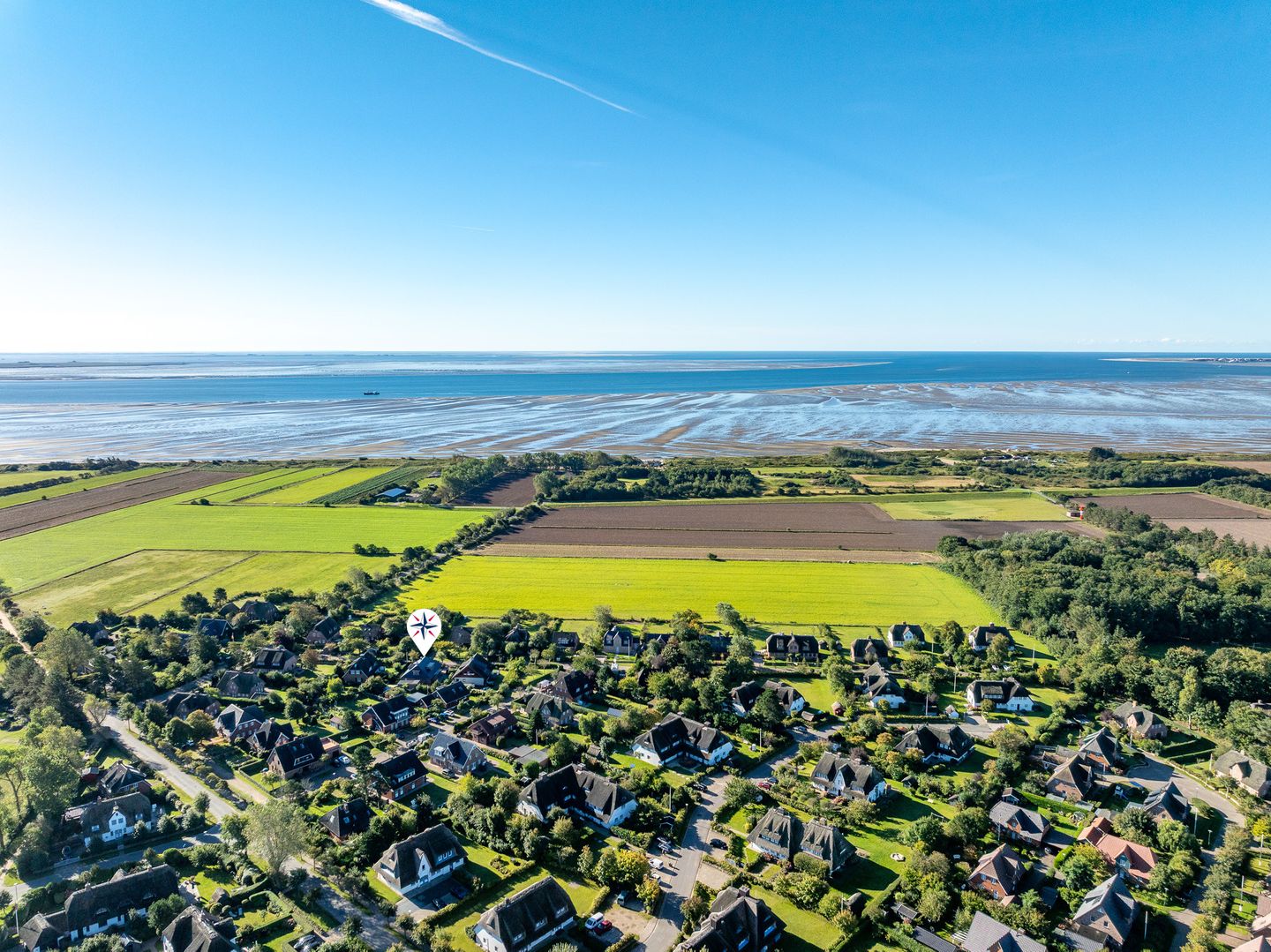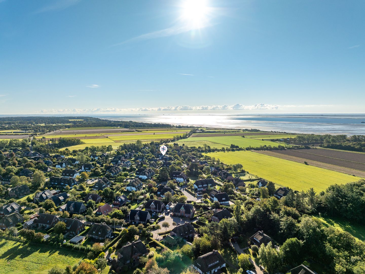Das Haus Westerheide ist ruhig gelegen im schönen Kapitänsdorf Nieblum. Von hier aus laufen Sie 10 Minuten zum Sandstrand von Nieblum und wenige Gehminuten zum Zentrum. Hier befinden sich zahlreiche Cafés und Restaurants. Auch einen kleinen Einkaufsladen und einen Bäcker finden Sie im Dorf.