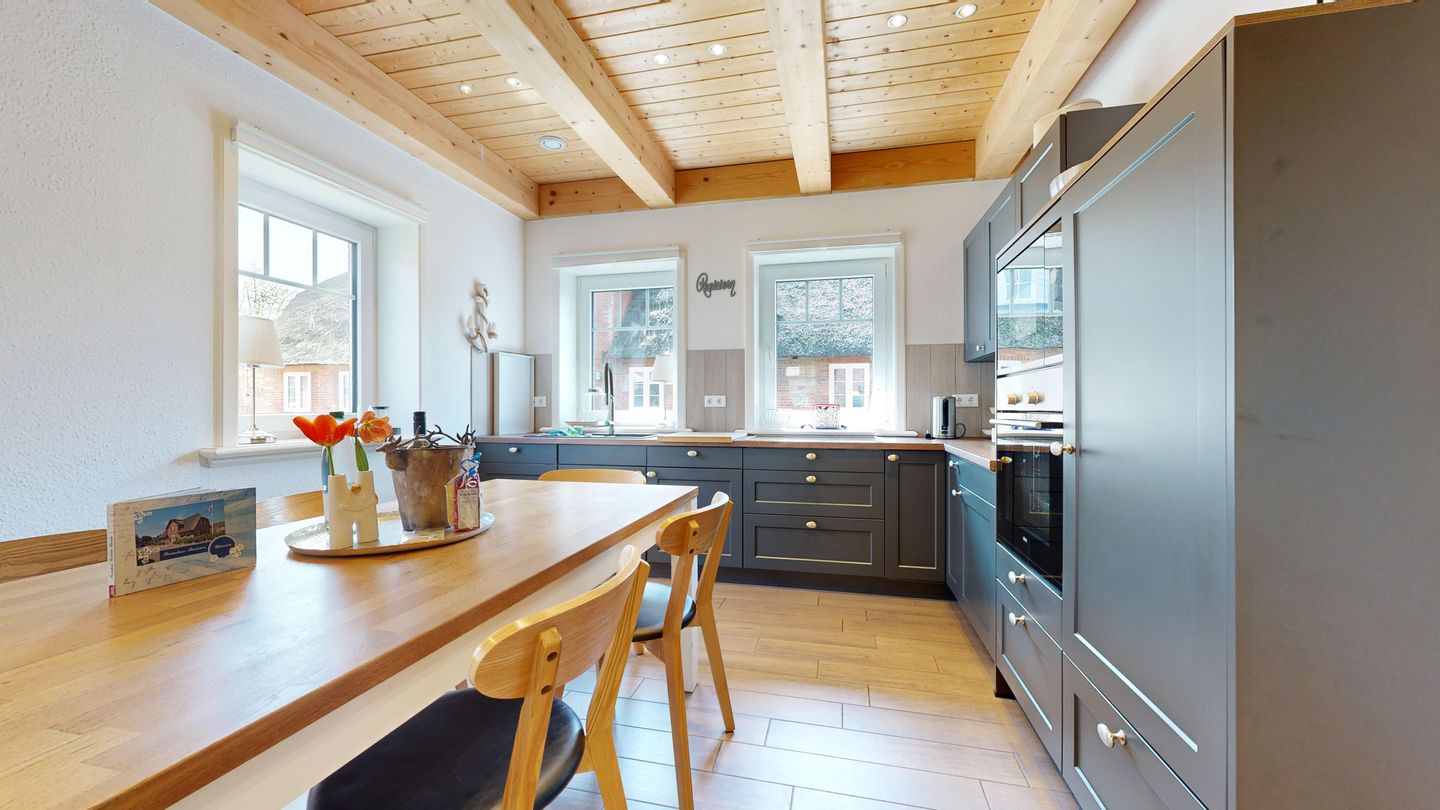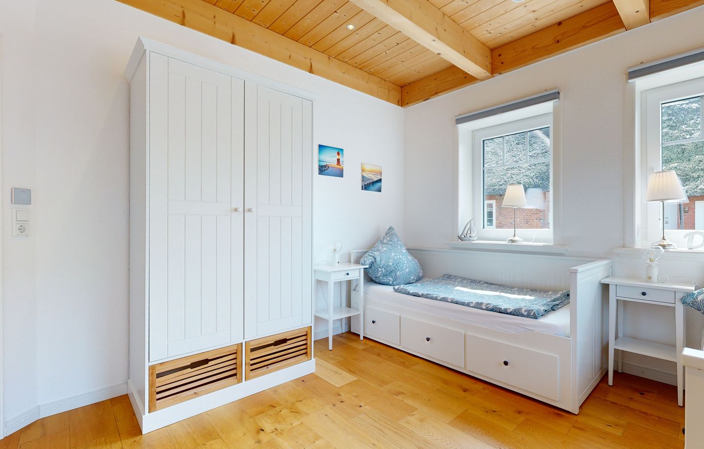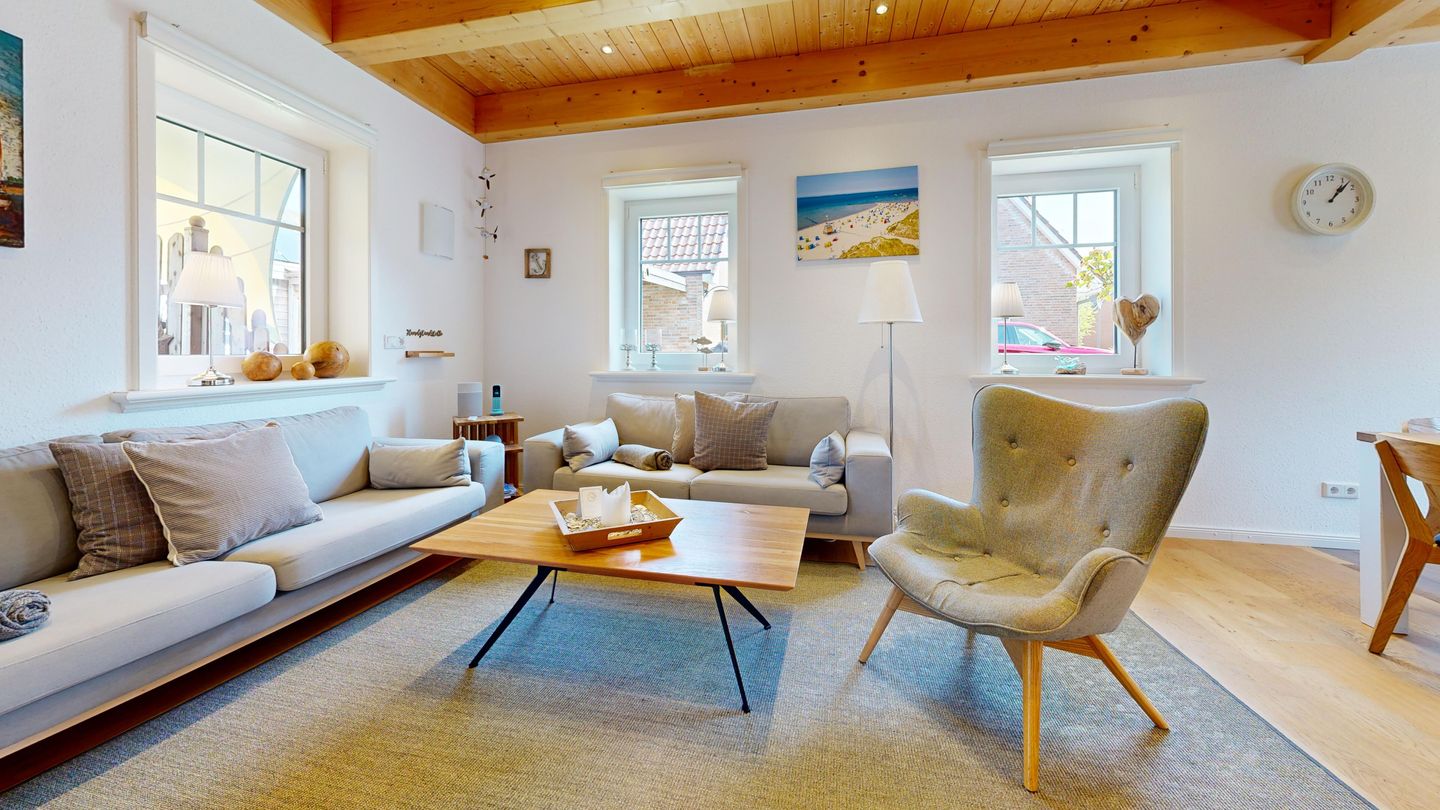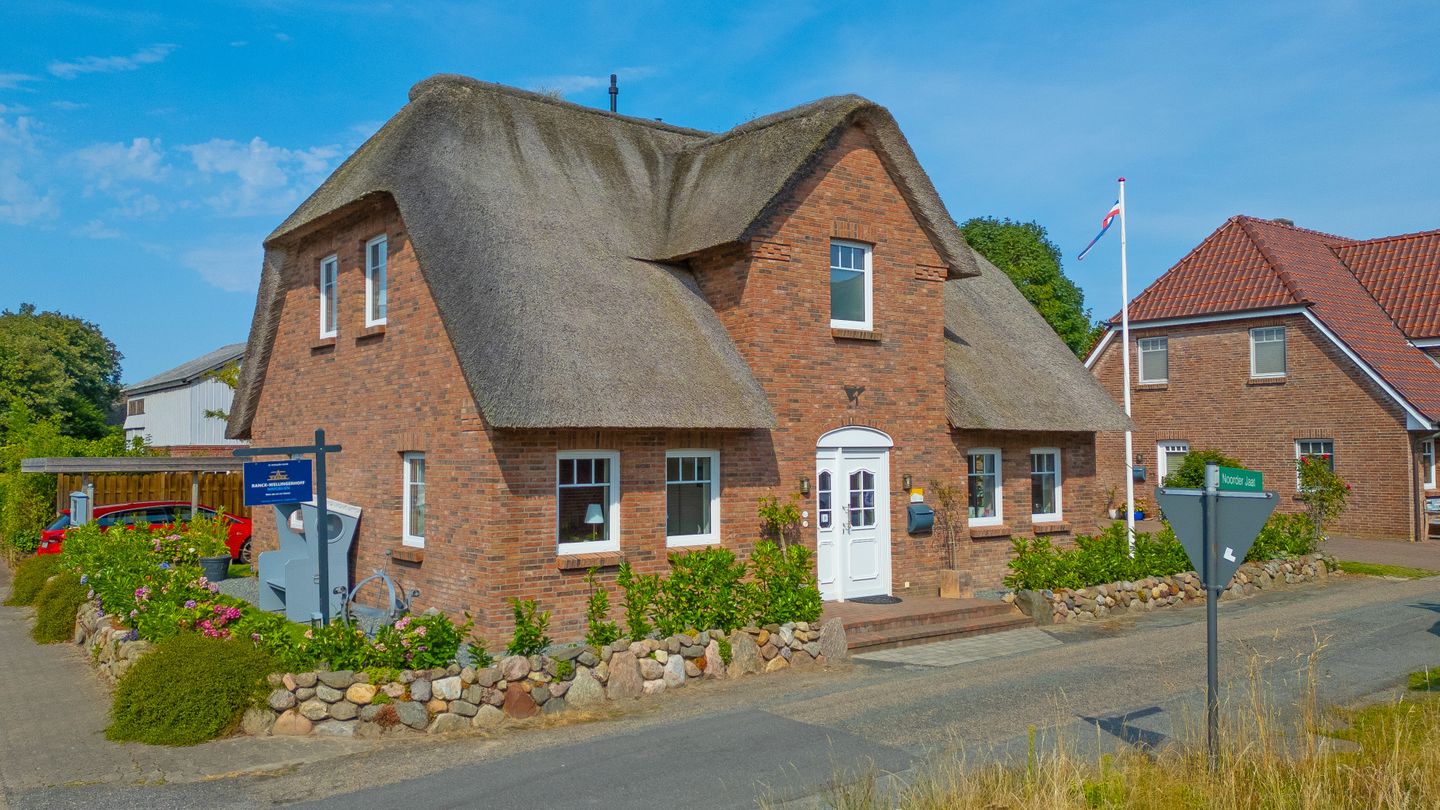 Das reetgedeckte Ferienhaus Tills Hüs verfügt über 3 Schlafzimmer und 2 Bäder und bietet somit komfortabel Platz für bis zu 6 Personen zuzüglich einer Kleinkinderaufbettung. Auch bis zu 2 Hunde sind herzlich willkommen.