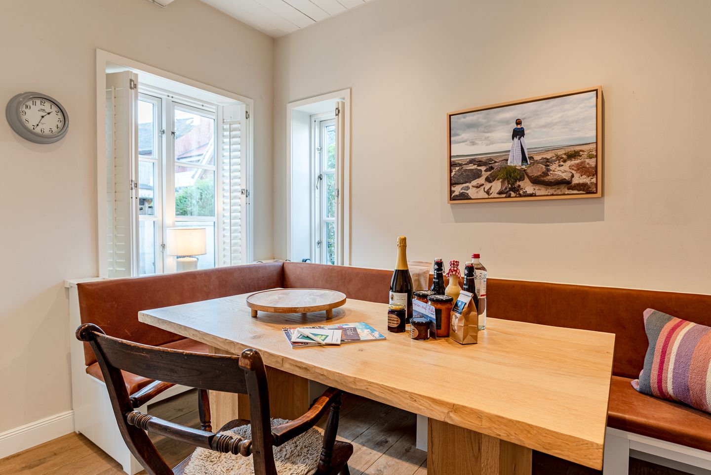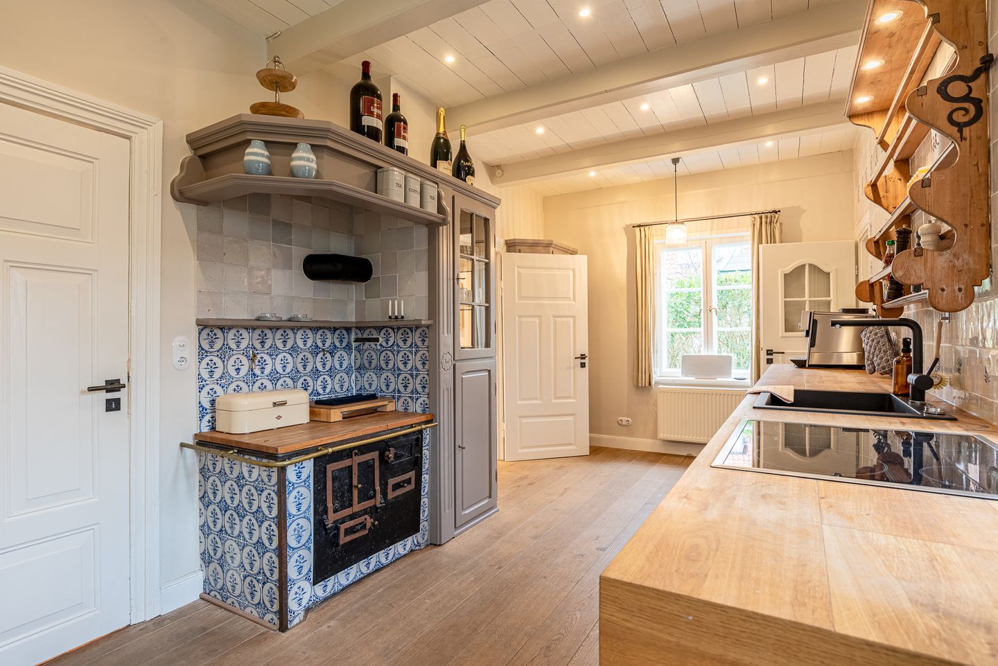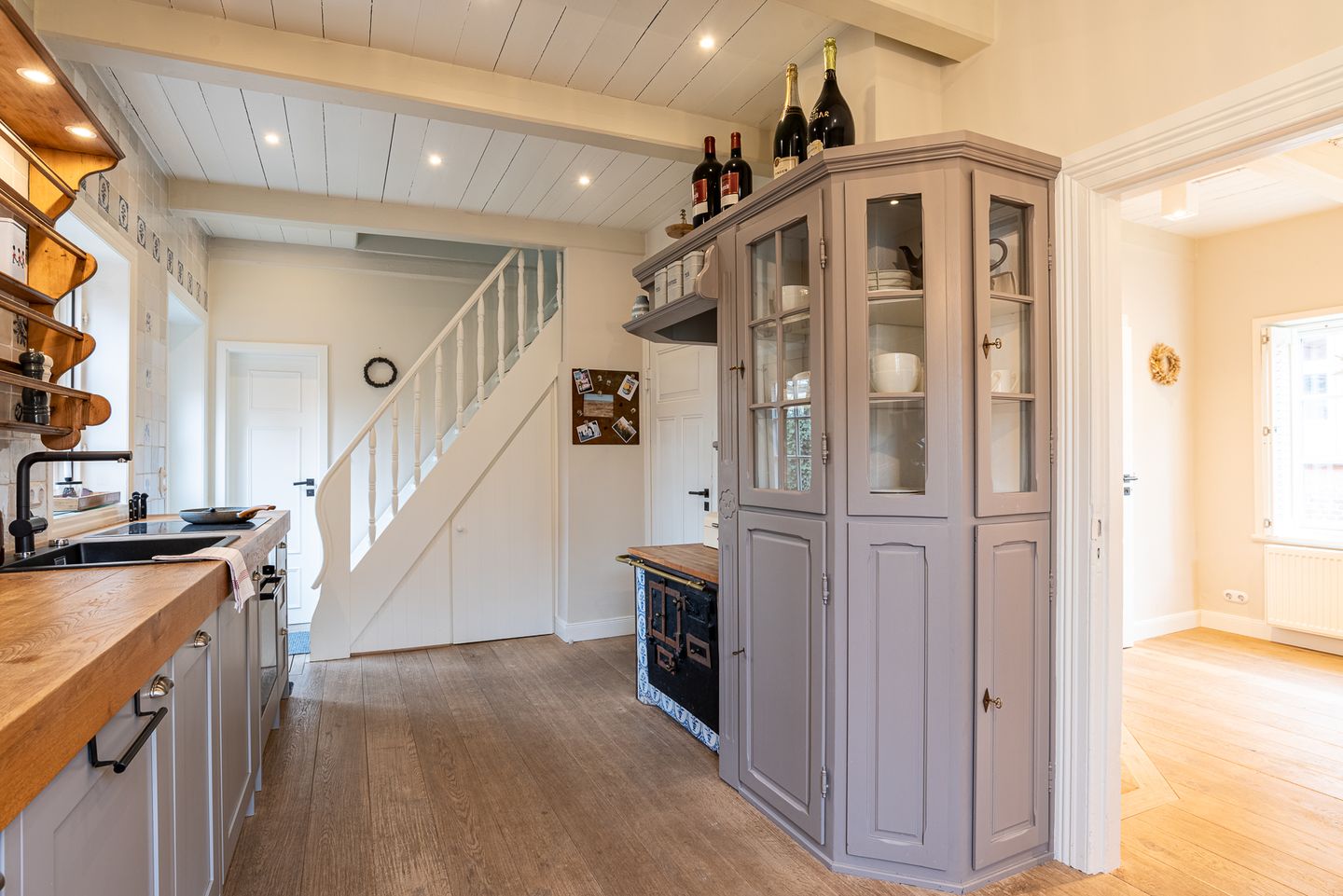 Die Küche ist mit original Delfter Kacheln ausgestattet und schafft so eine gemütliche Atmosphäre. Die Ausstattung ist auffällig vielfältig. Die Räumlichkeiten - Küche, Wohn- und Esszimmer - sind separat und können mit Türen geschlossen werden.