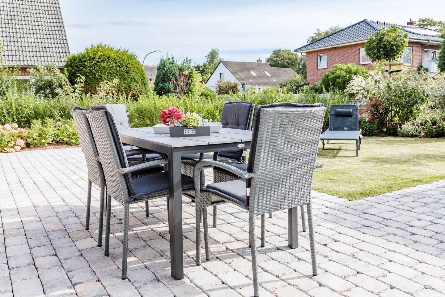 Entspannen Sie auf der eigenen Terrasse oder den Sonnenliegen im Garten! Ein eigener PKW-Stellplatz mit E-Auto-Ladestation sowie ein Gartenhaus zum Unterstellen Ihrer Fahrräder runden das Angebot ab.